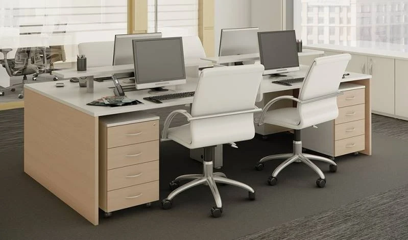 Economizando espaço e sendo uma forma prática de manter o local organizado, a mesa de trabalho compartilhada pode aproximar os colaboradores de uma empresa, tornando o ambiente ainda mais unido e simplificando a comunicação de uma equipe, por exemplo.